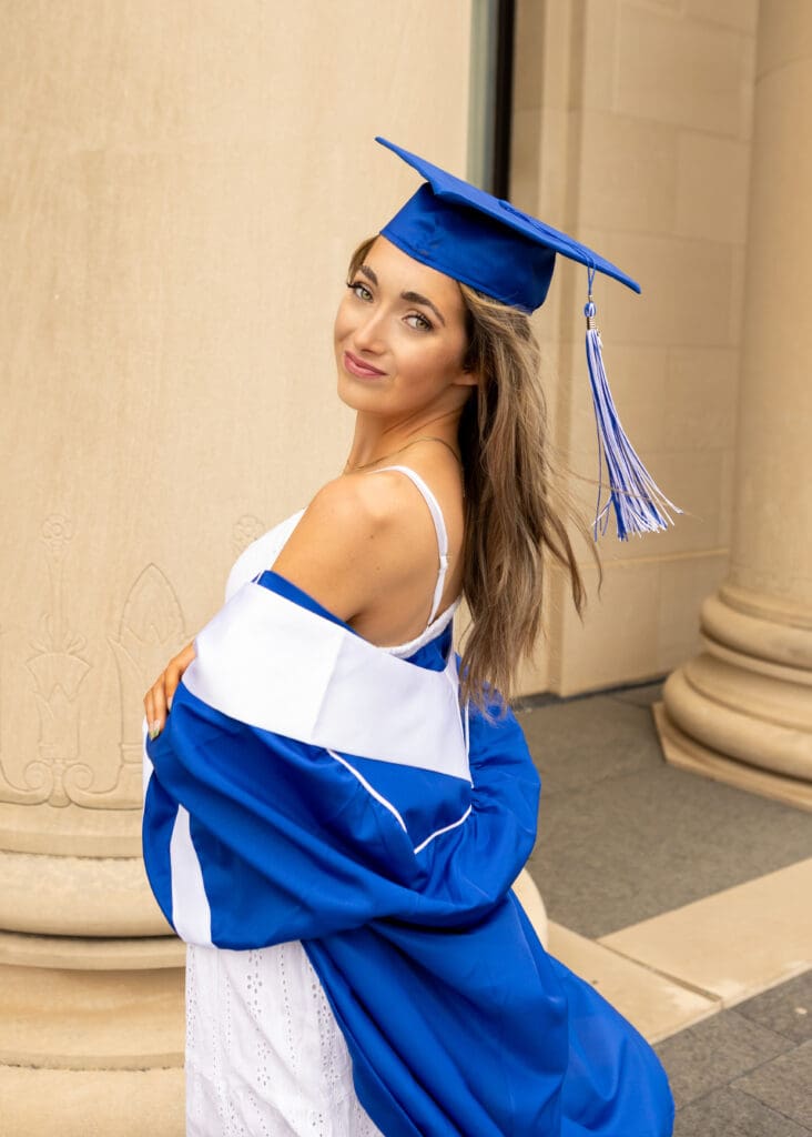 Cap and gown sessions at the Nelson-Atkins Museum are always timeless. The architecture, clean lines, and open lawn give such a classic backdrop for celebrating senior year in Kansas City.